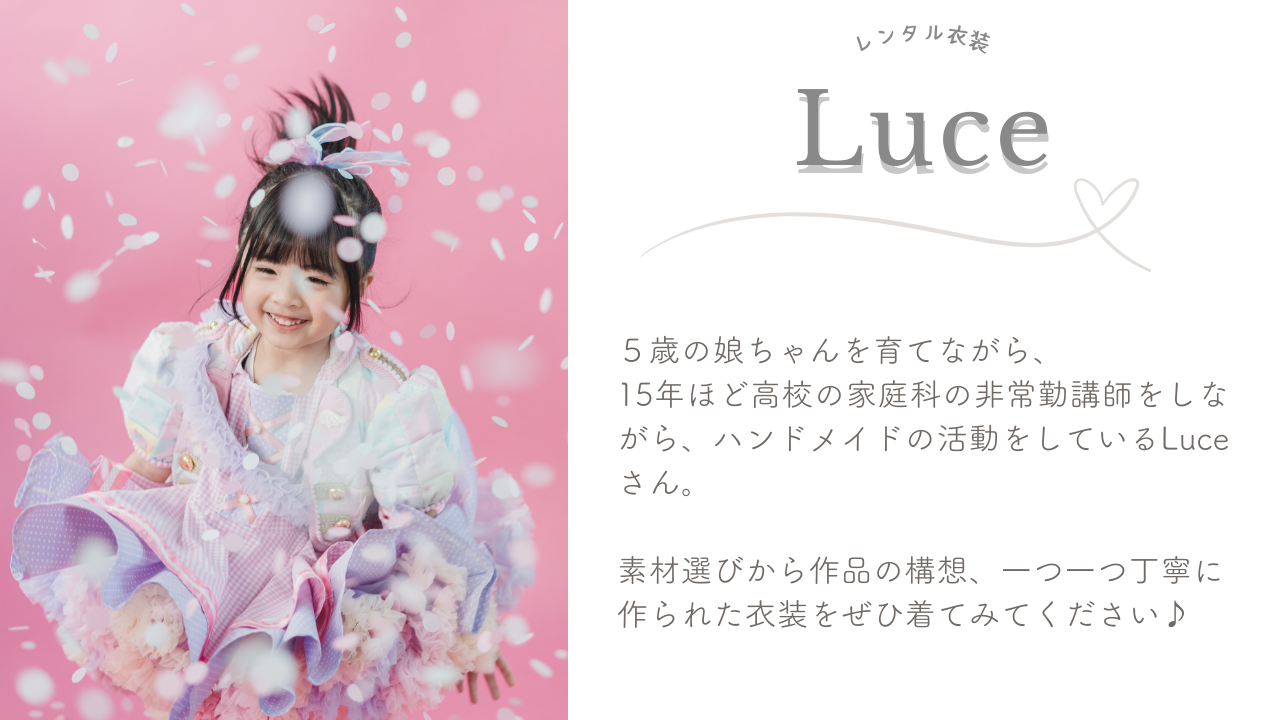 ハンドメイド作家「Luce」様のレンタル衣装です。